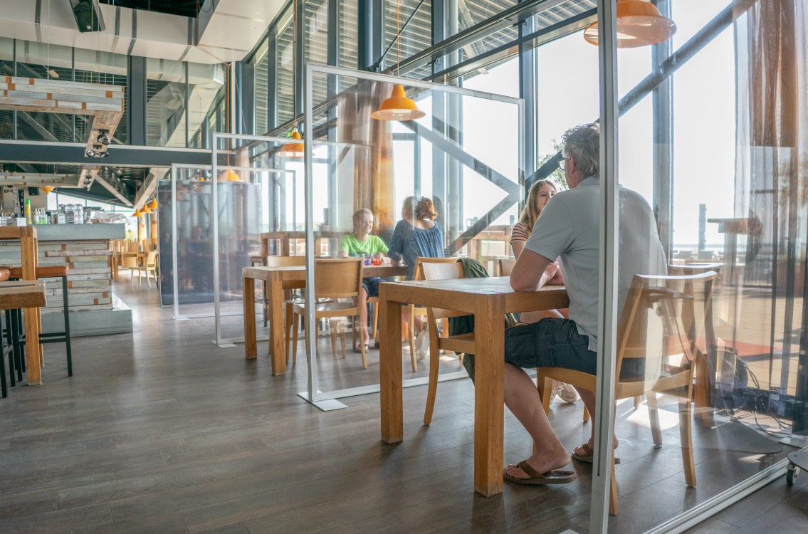 De scheidingswanden creëren op kantoor veilige werkplekken voor medewerkers. Er zijn verschillende opstellingen mogelijk, aanpasbaar aan uw specifieke situatie. Ook kunnen de transparante scheidingswanden worden ingezet om bijvoorbeeld looproutes van elkaar te scheiden. Dit creëert duidelijkheid en overzichtelijkheid voor uw klanten.