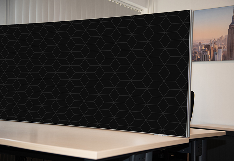 Als er weer op een veilige manier gewerkt kan worden zonder de transparante scheidingswanden dan kunnen de frames van geprinte doeken worden voorzien. Gebruik het frame met gepersonaliseerd doek op een prominente plek in uw winkel of maak van de scheidingswanden akoestische werkplekafscheider.