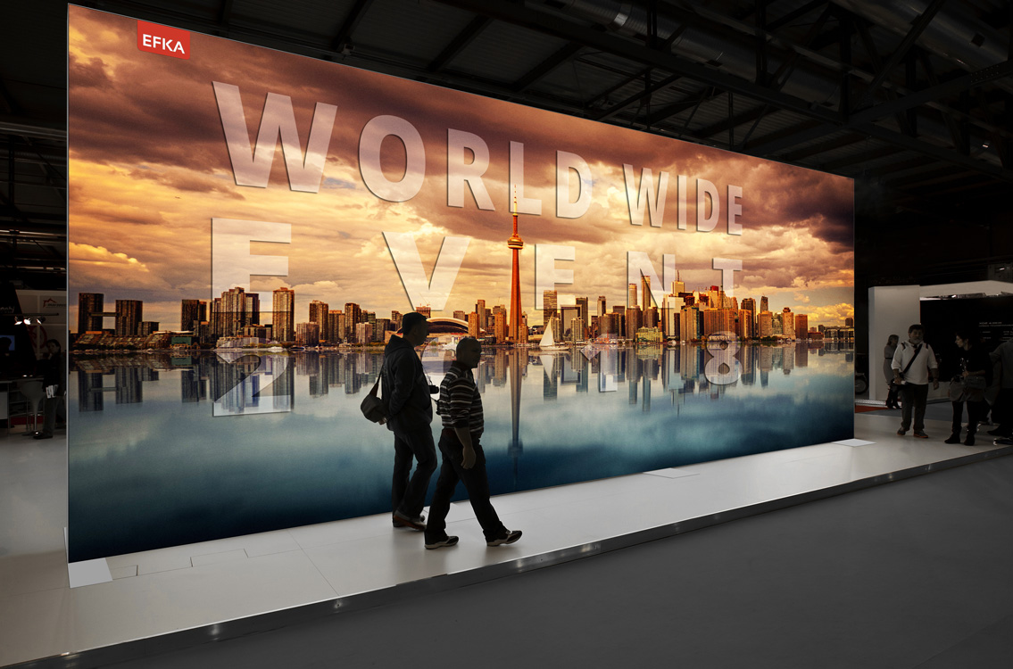 LED op stabilizer wordt aanbevolen voor extreem grote formaten om zeker te zijn van een egale lichtverdeling. Het verlicht de textielprint vanaf de achterkant met LED gemonteerd op stabilizers.