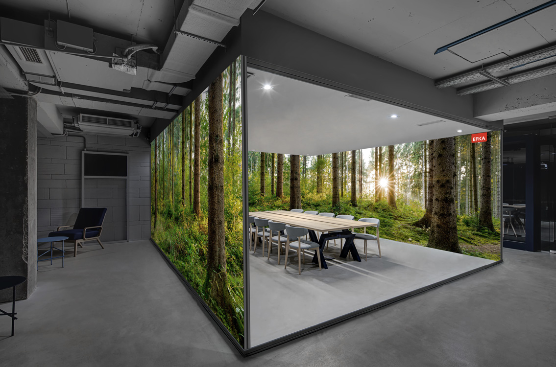 Deze O-vormige formatie is een complete opstelling om vrijstaand te gebruiken als opslagruimte of als aparte vergaderruimte
