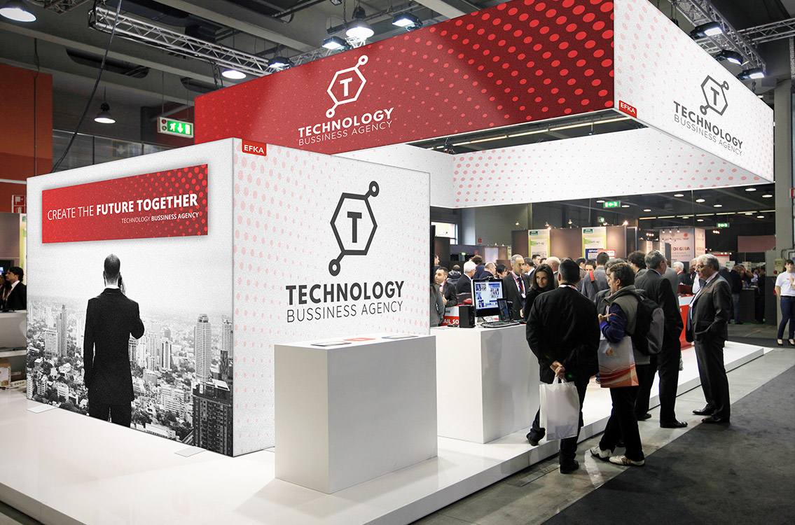 op de beursvloer. Of hang de O-vorm op en creëer een indrukwekkende banner boven uw beursstand.