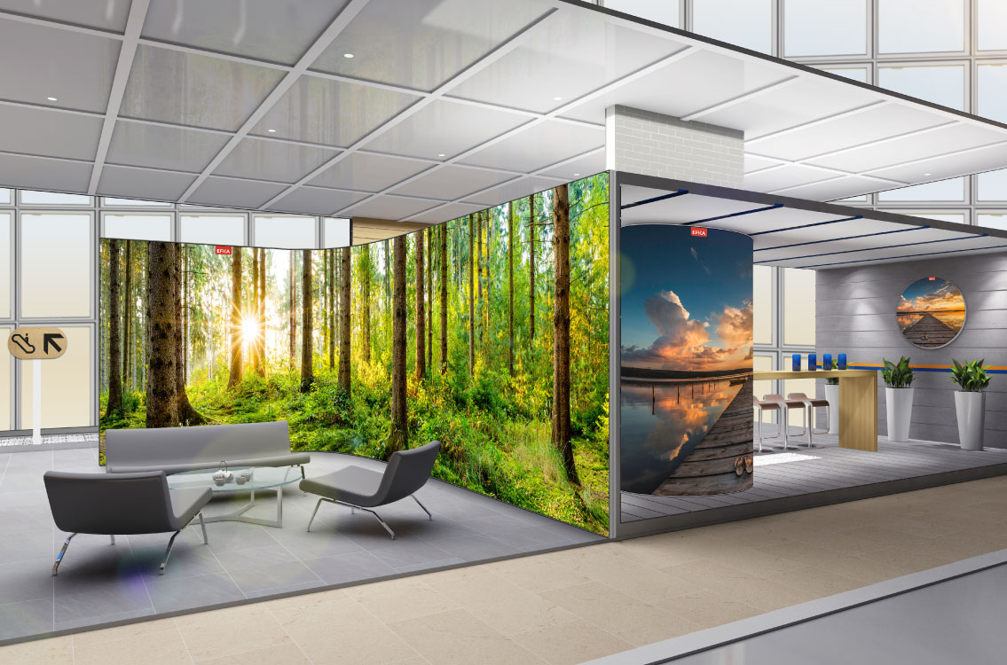 Een gebogen frame is zeer geschikt om als indrukwekkende banner bij beurzen te gebruiken. Tevens kan het gebogen frame gebruikt worden als unieke scheidingswand of achterwand. Verhoog de attentiewaarde met textielframes in deze unieke vorm. Het aluminium frame is eenvoudig te monteren en te voorzien van een textielprint. Creëer spectaculaire banners in elke maat. Wissel eenvoudig de textielprint en verander meteen de look en feeling.