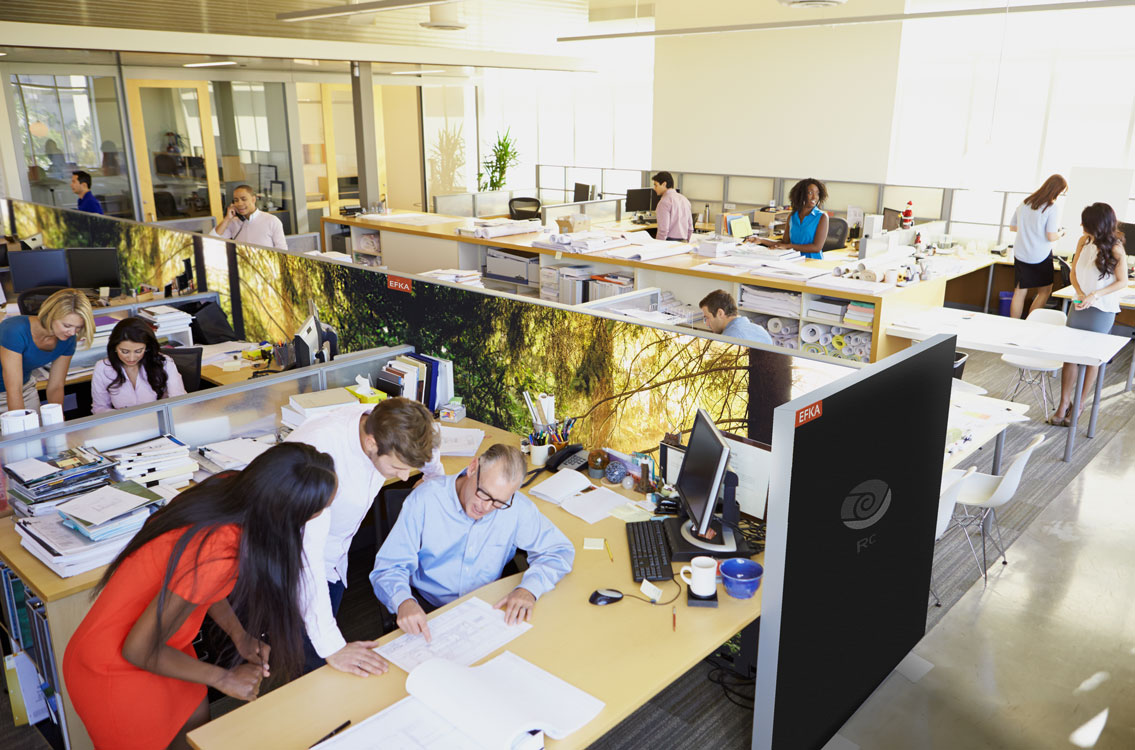 Verbeter de akoestiek op uw kantoor door snel en eenvoudig geluidsabsorberend materiaal aan het scherm toe te voegen.