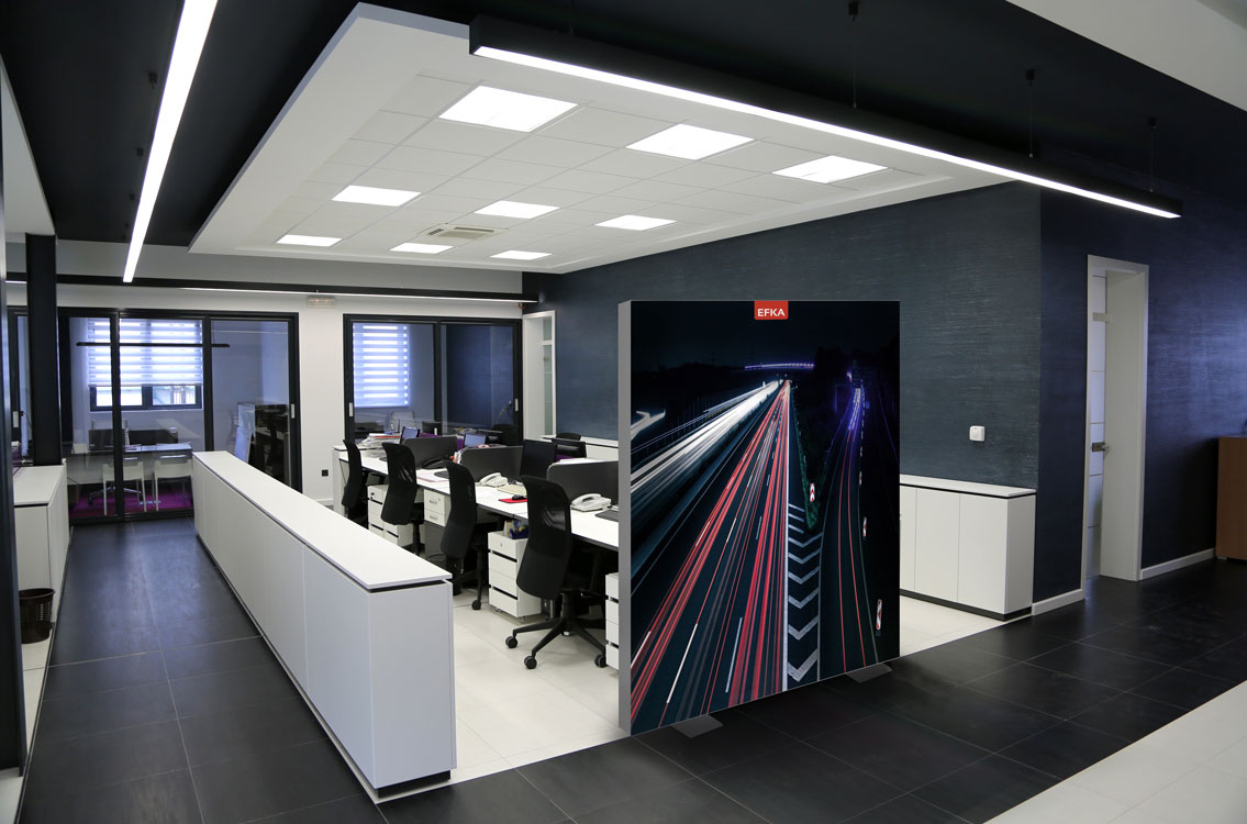 Een scheidingswand, ook wel een kantoorscherm, ruimteverdeler, akoestische wand genoemd, is inzetbaar in elke gewenste ruimte. Met een scheidingswand deelt u ruimtes flexibel in. Het aluminium frame kan aan beide zijden worden voorzien van een doek. Het kantoorscherm zorgt voor sfeer en een betere akoestiek.