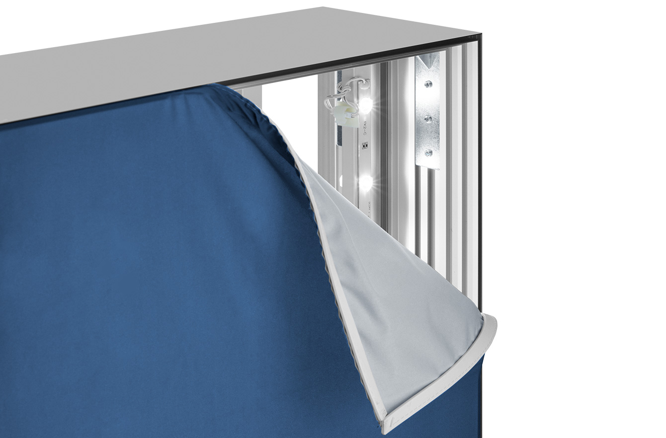 Deze techniek verlicht textielprints vanaf de achterzijde met LED gemonteerd op stabilizers.